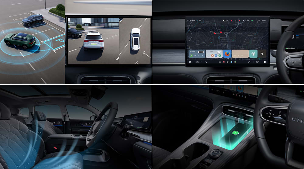 Sederet fitur kenyamanan lainnya siap memanjakan Anda dan keluarga: wireless charging hingga 50 watt, AC dual-zone otomatis, ambient lighting, panoramic sunroof besar, sampai kaca dengan laminasi khusus untuk meredam suara.