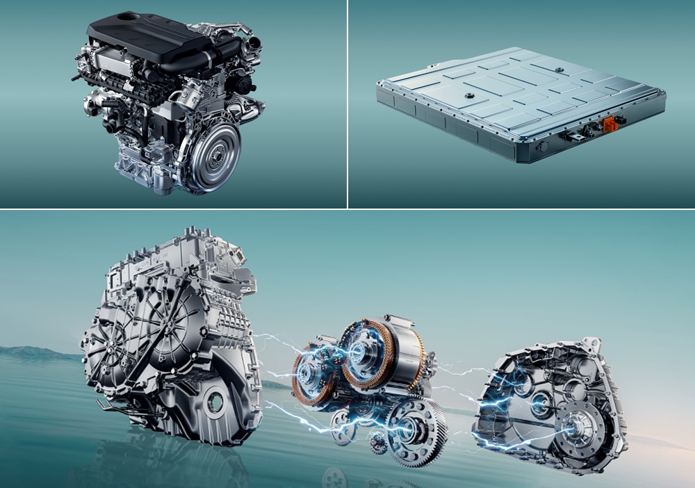 Kombinasi keduanya menghasilkan tenaga puncak hingga 143 PS dari mesin bensin, ditambah ekstra 204 PS dari motor listrik—total sistem gabungan mencapai 347 PS dan torsi 525 Nm.